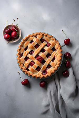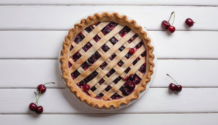 AI Generated. Freshly baked cherry pie with lattice crust