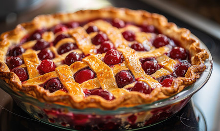 Homemade cherry pie with lattice crust