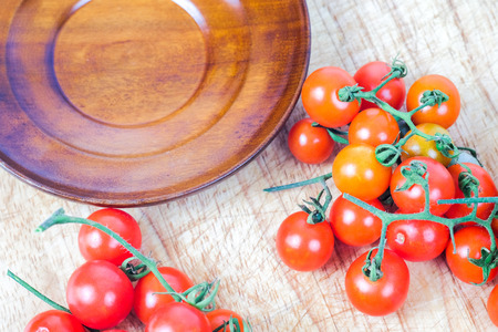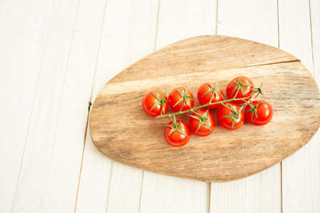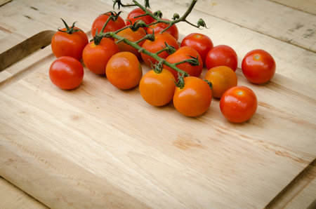 tomato cherry on wooden board