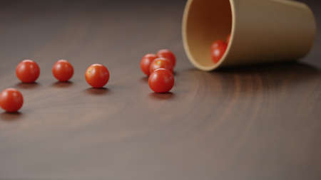 cherry tomatoes scattering on table. fresh salad ingredient. spring and summer vitamin food. low carb diet meal. kids foos for peaky eaters.