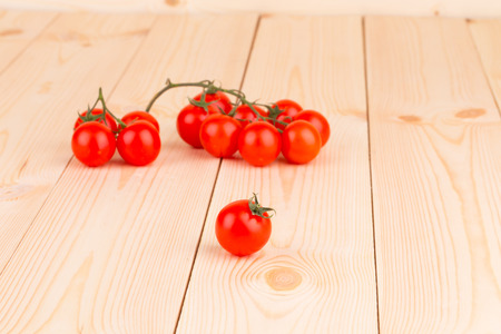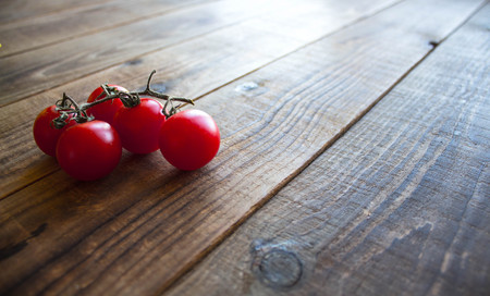 Small Tomato on wood background.Food concept.