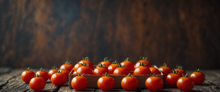 Fresh cherry tomatoes on rustic wooden background