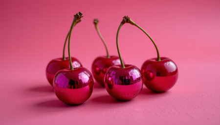 Shiny disco cherry fruit pink background glossy reflection playful pop art modern minimal vibrant