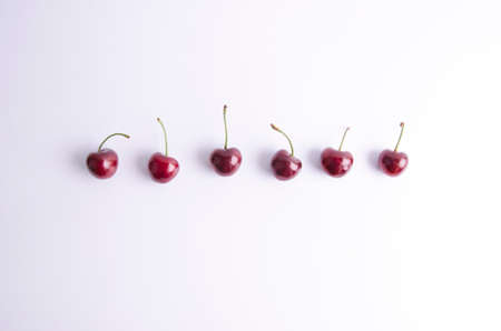 Red ripe cherries on white background. Flat lay. Food concept.
