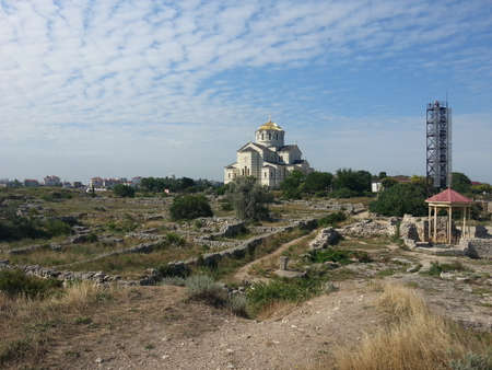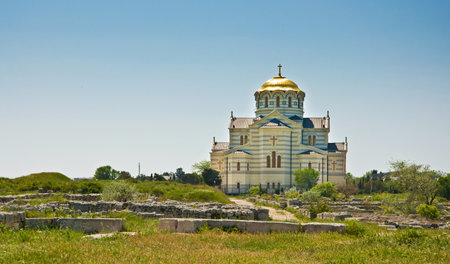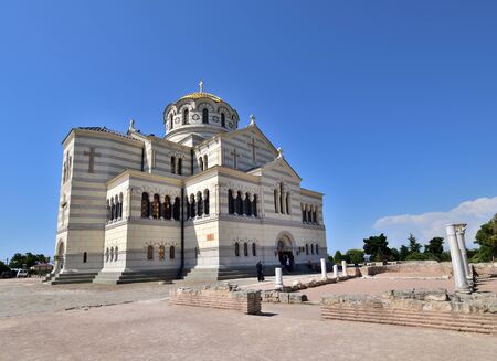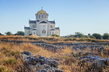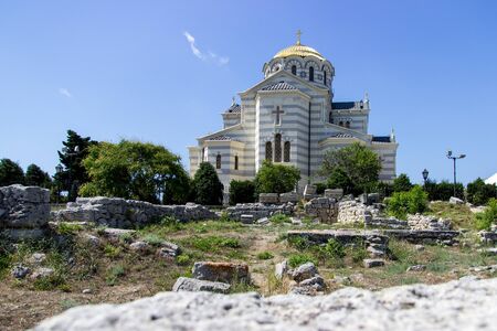 Vladimir Cathedral Orthodox Church in the ancient city of Chersonese (Korsun) in the National Reserve Chersonese Taurian in the city of Sevastopol. Crimea, Ukraine.
