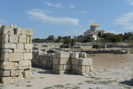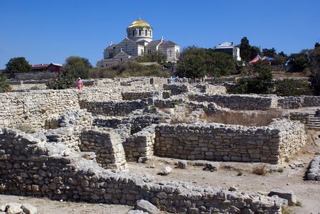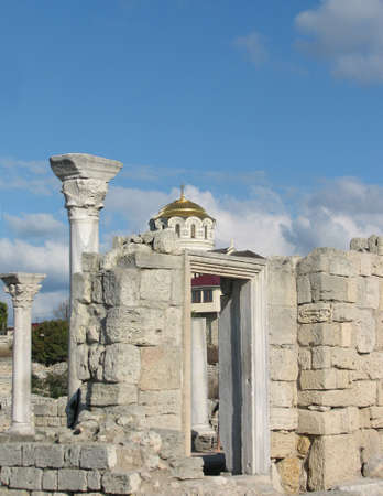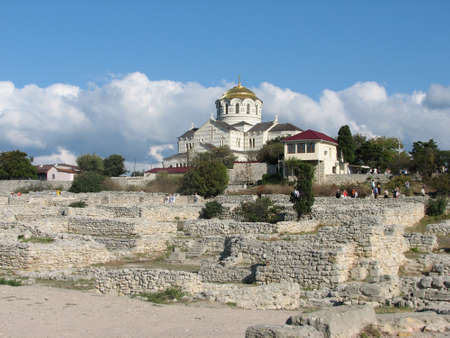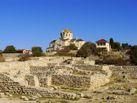 Church and ruins in Hersonesos near Sevastopol, Crimea