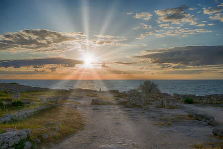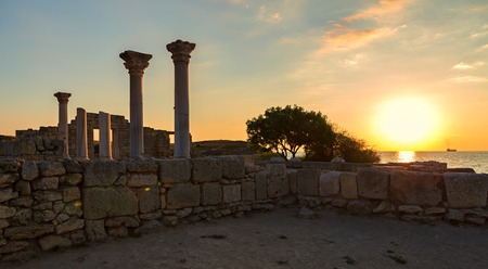 Ruins of ancient greek colony Khersones. Sunset, Sevastopol,Crimea