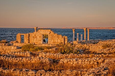 Chersonesos Tavrichesky - ancient city founded by greeks at Crimea peninsula in 1 century before Christ. Sunset time.