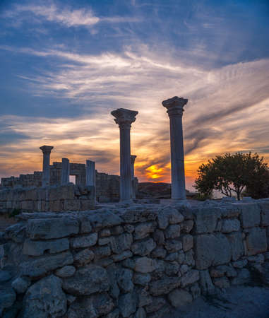 Chersonesos Tavrichesky - ancient city founded by greeks at Crimea peninsula in 1 century before Christ. Sunset time.
