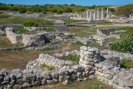 Sevastopol, Crimea, Russia - July 26, 2019: Ruins of the ancient city of Khersones in Sevastopol, Crimea