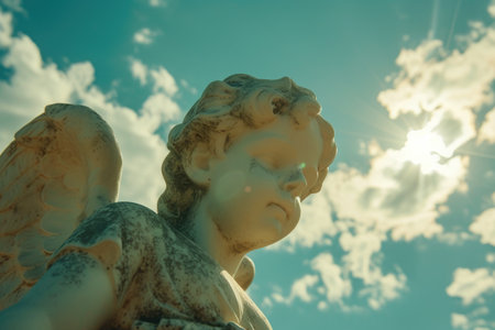 Angel Statue in Dramatic Cloudy Sky with Sunlight