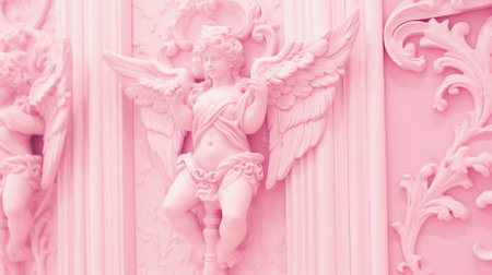 Banner. figurine of an angel Cupid with a bow on a pink background. Valentine's Day. Pastel colors