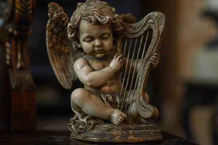 A small cherub playing with a tiny harp --ar 3:2 Job ID: c5f363b7-18d6-4b7f-a3f5-331f5bf7c036