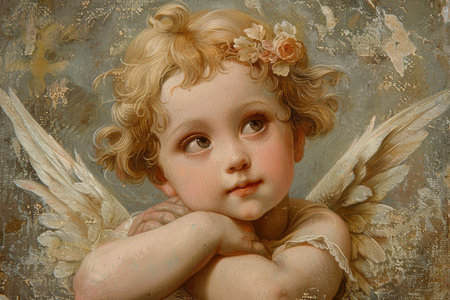 angel art cupid Cute children, purity innocence, wings with feathers fly, bible religion, baptism christening god, newborn cupid kindness birthday greetings