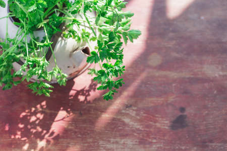 Green fresh parsley grows in a pot