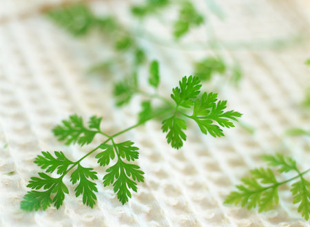 Raw Organic French Parsley Chervil on a Background