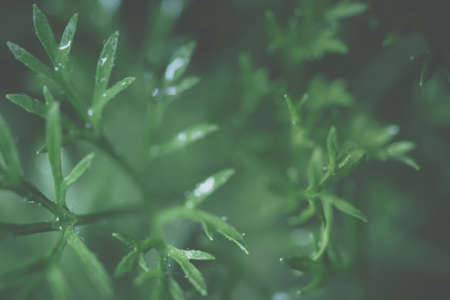 A branch of green micro fern. A low key photography. The beauty of nature and the environment.Glamor retouch.