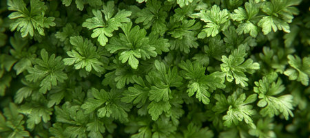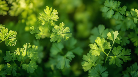 Fresh green parsley leaves in the garden.