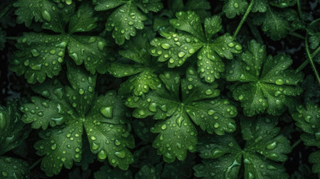 A vertical shot of green leaves of plants with dewdrops perfect for background