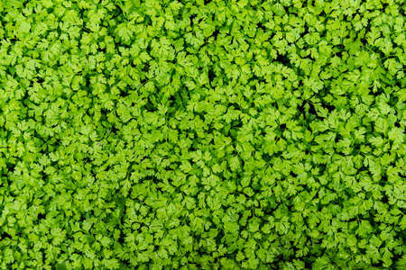 Green background of fragrant parsley leaves in the garden.