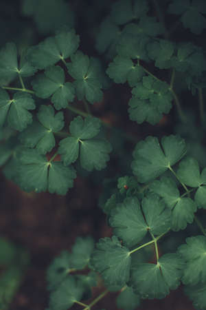 Poison hemlock leaves close-up view with selective focus background
