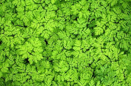 Green leaves of chervil plant. Spice herbs.