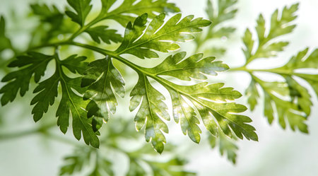 Green parsley with bright texture on a plain background.