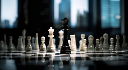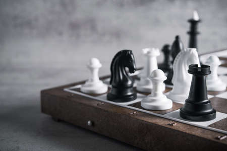 Chess game. Strategic desicion making. Plan and competition concept. Black and white.