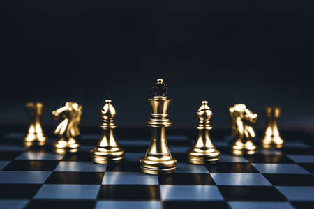 Golden chess team on chess board Concept of business strategic plan and professional teamwork and management.