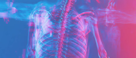 Detailed X-ray of human upper body showing bones and spine