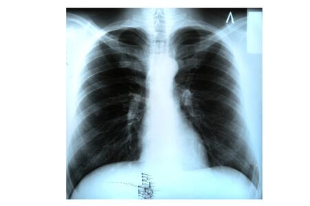 Human lung x-ray analysis, doctor examines lung disease. Pneumonia. Lung x-ray isolated on white background.