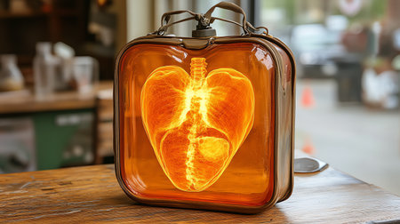 This x-ray image captures the intricate structure of a persons chest, highlighting the lungs and ribcage, Human chest X-ray film in 3D, AI Generated