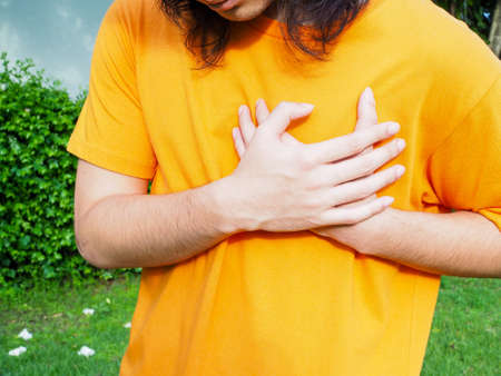 Chest pain symptoms of heart disease or people with acute heart attack and feeling bad