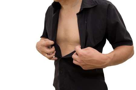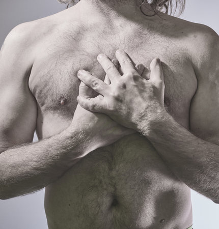 Adult man torso with heart shape on the chest. Healthy human heart.