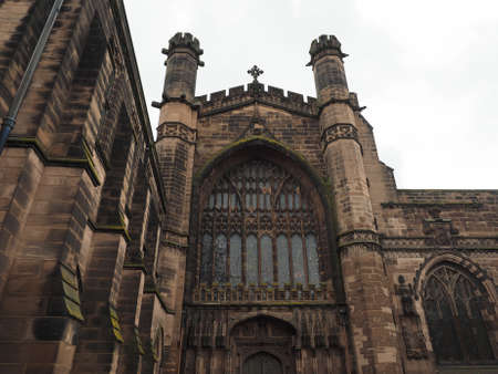Chester Anglican Cathedral church in Chester, UK in black and white