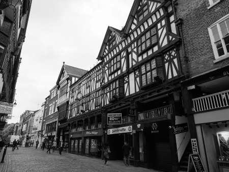 CHESTER, UK - CIRCA JUNE 2016: View of the old city centre in black and white