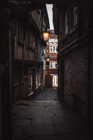 Dark, old and narrow alleyway of York, Yorkshire, UK