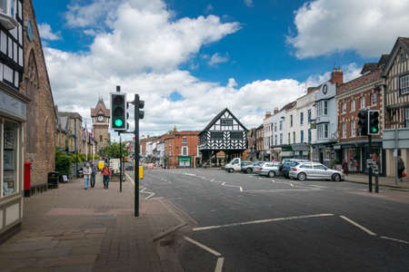 View of the High Street in the ancient market town of Ledbury, Herefordshire, UK