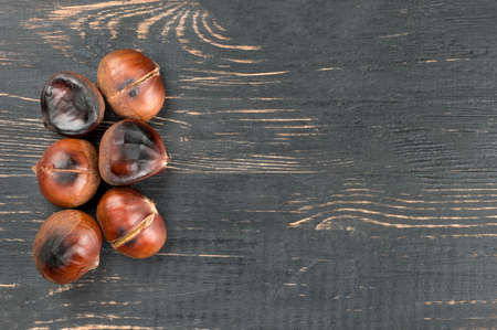 Roasted chestnut, on a wooden table, no people ,. High quality photo