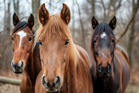Equine Elegance: The grace and majesty of these brown young stallions in their autumn paddock evoke a sense of rural serenity and equestrian harmony