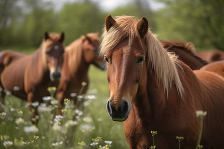The Icelandic horse may be a breed of horse made in Iceland. Closeup Icelandic steeds. Creative resource, AI Generated