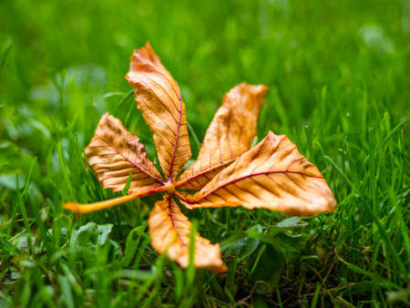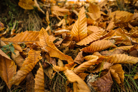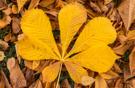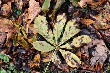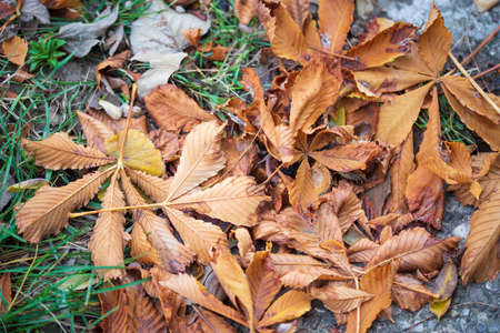 abstract autumn background - fallen leaves on the ground - chestnut leaf