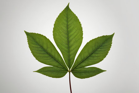 the sunflower leaf, with its vibrant green color and intricate veins, lies flat on a pristine white background, showcasing its delicate shape and texture, evoking feelings of serenity and simplicity, perfect for nature enthusiasts and photography lovers alike. ai generated