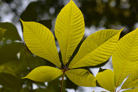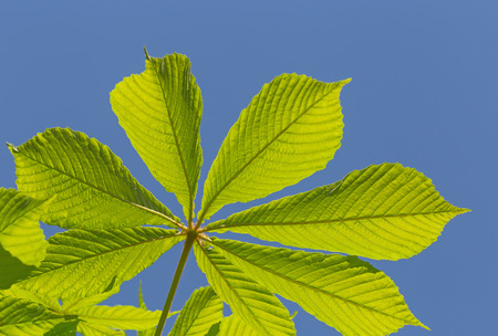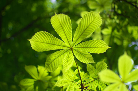 Young, light-green leaf of horse-chestnut tree Aesculus hippocastanum