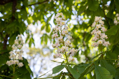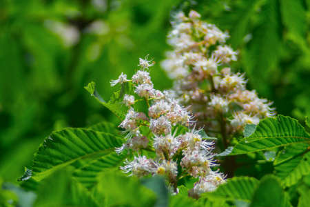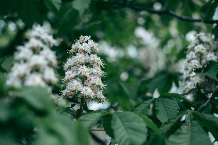 Beautiful summer flowers. Chestnut flowers close up. Selective focus. Small depth of sharpness