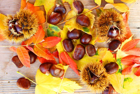 photo of autumn background with chestnut