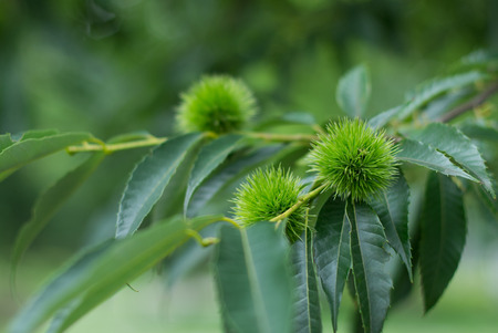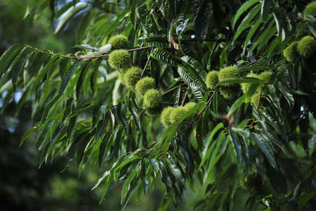 Chestnut forest, chestnuts burrs are about to hatch and drop their chestnuts for the autumn harvest.