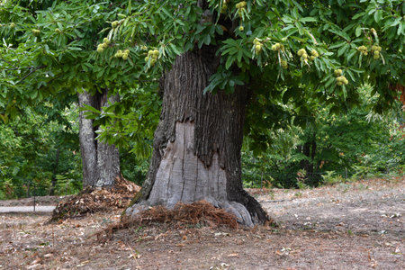 chestnut tree maturing and dry in a forest