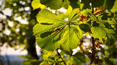 chestnut branch with green leaves in a sunny day