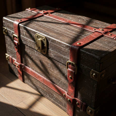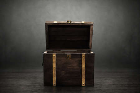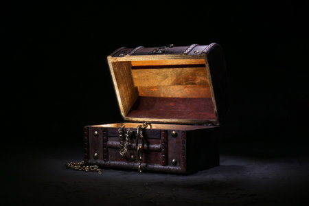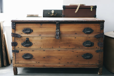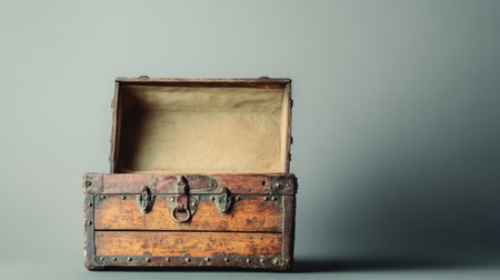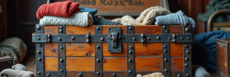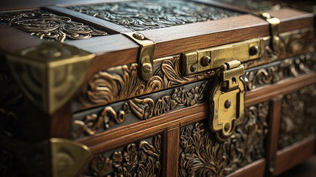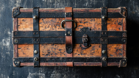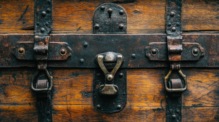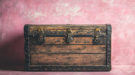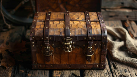 An antique wooden chest with metal locks and hinges, providing a nostalgic, rustic look
